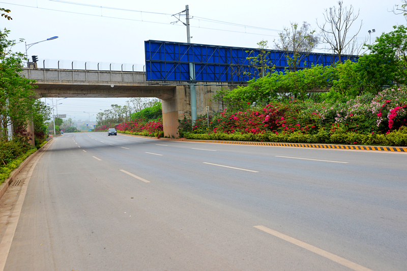 該道路設(shè)計標(biāo)準(zhǔn)為城市主干道,道路全長約4.8公里。設(shè)計道路寬度為60米,雙向8車道,橫斷面采用四塊板形式,路面采用瀝青混凝土路面,設(shè)計速度為60千米/小時。主要包括道路、橋涵、排水、照明、綠化、交通工程等建設(shè)項目。項目總投資6.5億元,其中建安費(fèi)3.2億元。