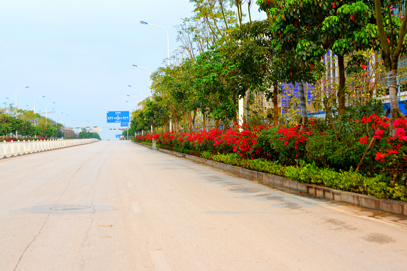 本項(xiàng)目位于國(guó)凱大道,于2014年12月開(kāi)工,2015年1月完工,綠化面積約1200㎡,種植主要品種有:朱槿、夾竹桃、非洲茉莉、木槿、紅花繼木、三角梅、星光榕、亮葉朱蕉、銀邊沿階草等