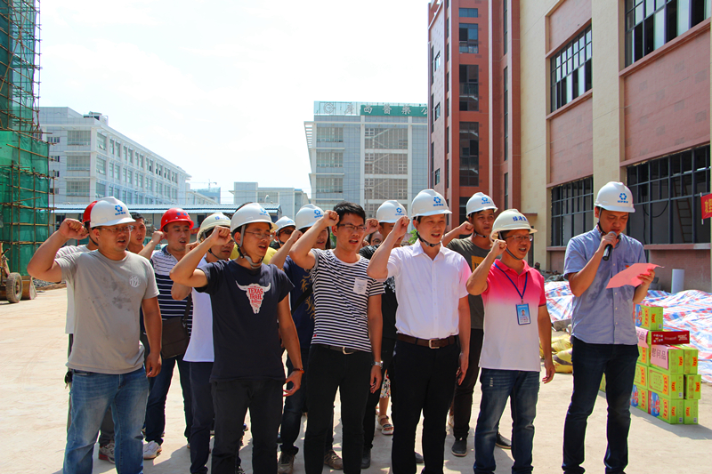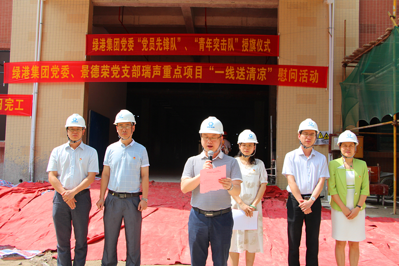 當(dāng)天,驕陽似火。綠港集團(tuán)黨委書記、董事長、總經(jīng)理龔國強(qiáng)莊重地給黨員們授予“黨員先鋒隊”紅旗,給青年突擊隊員們授予“青年突擊隊”紅旗,并提出了幾點(diǎn)要求:一是要緊緊圍繞項目建設(shè)開展突擊活動。全體黨員干部和青年同志要充分發(fā)揚(yáng)不怕吃苦、勇于負(fù)重,敢打硬仗、能打硬仗的優(yōu)良傳統(tǒng),切實(shí)發(fā)揮“黨員先鋒隊”、“青年突擊隊”在“急、難、險、重”任務(wù)中的生力軍作用。二是要把項目建設(shè)與錘煉黨員意志相結(jié)合。黨員干部和青年同志們要充分發(fā)揮模范帶頭作用,深入項目一線,了解項目建設(shè)困難,想方設(shè)法協(xié)調(diào)解決。要在項目建設(shè)中增強(qiáng)本領(lǐng)、錘煉意志、增強(qiáng)黨性,更好的服務(wù)入?yún)^(qū)企業(yè)建設(shè)發(fā)展。三是要充分發(fā)揮“黨建帶團(tuán)建”作用?!包h員先鋒隊”要引導(dǎo)和指導(dǎo)好“青年突擊隊”開展好項目建設(shè),黨員干部與青年同志們要相互關(guān)心,密切配合,充分發(fā)揮整體功能和團(tuán)隊精神,確保瑞聲廠房項目能在6月25日完工交付9號廠房、7月25日完工交付3、13號廠房的任務(wù)目標(biāo)。