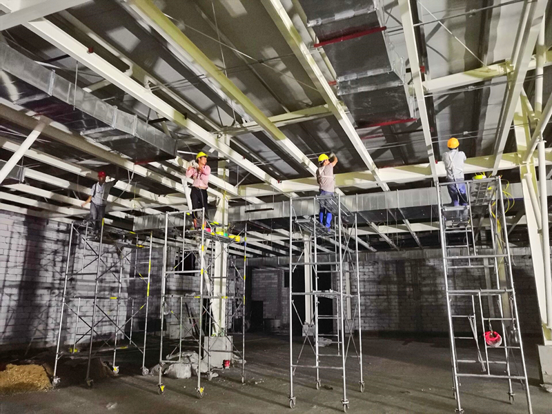該項目裝修工程分為兩個階段,第一階段于6月28日完成任務(wù),裝修施工面積30000㎡ ,項目工期僅為60天;第二階段將于7月25日前整體完成產(chǎn)業(yè)園其余部分的裝修工作。