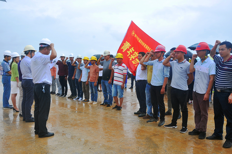 當天,細雨蒙蒙,綠港集團黨委書記、董事長、總經(jīng)理龔國強在項目現(xiàn)場給參建黨員授予了“黨員先鋒隊”旗幟,給參建團員青年授予了“青年突擊隊”旗幟,綠港集團副總經(jīng)理、工會主席黃麗琴給吳圩空港經(jīng)濟區(qū)重點項目推進組授予了“工人先鋒號”錦旗,激勵廣大黨員干部青年同志們要以強烈的政治責任感、立足本職崗位,充分發(fā)揚不怕吃苦、勇于負重,敢打硬仗、能打硬仗的“綠港鐵軍”優(yōu)良傳統(tǒng),為吳圩空港經(jīng)濟區(qū)項目建設(shè)做貢獻。