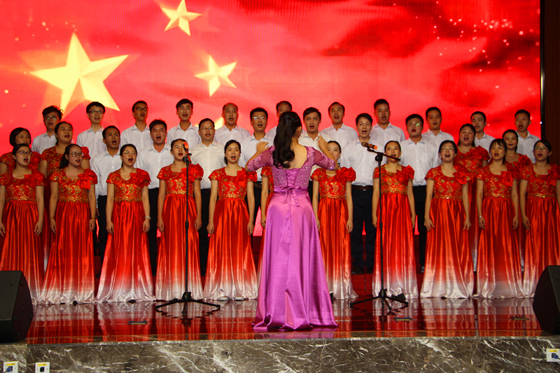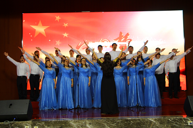 集團領導班子成員、總經(jīng)理助理上臺演唱《心會跟愛一起走》