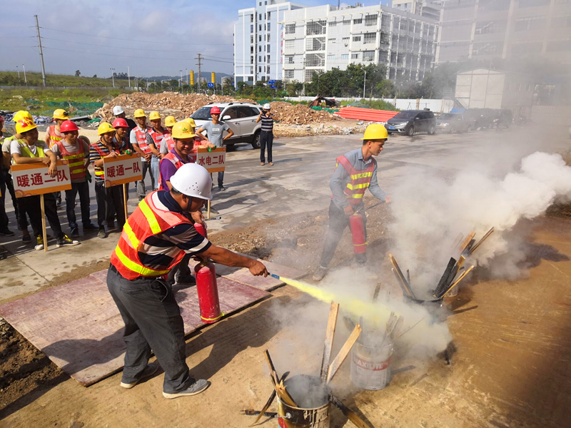 激烈的比賽結(jié)束后,消防應(yīng)急演練活動(dòng)開始了。當(dāng)聽到“起火啦”的大喊聲,全體人員井然有序的進(jìn)行了逃生演習(xí)。伴隨著濃濃的煙霧,每個(gè)人捂著“濕毛巾”,沿著樓梯靠右一個(gè)接一個(gè)的快速撤離。當(dāng)全體人員走出廠房大門時(shí),工作人員在空地上點(diǎn)燃了幾盆火焰。公司質(zhì)安部負(fù)責(zé)人講解了干粉滅火器的使用方法后,大家進(jìn)行了踴躍的嘗試。在此次消防演習(xí)中,本著防患于未然的心態(tài),所有人員積極參與,專心聽講,既鞏固了消防安全知識(shí),也提高了項(xiàng)目安全生產(chǎn)工作水平。