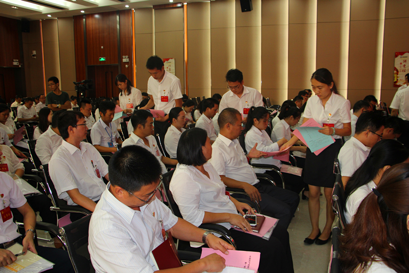 上午八點十分,大會全體工作人員提前到位,大會籌備會務(wù)組人員整齊地擺放好簽到表、出席證、嘉賓證和列席證,做好迎接大會的準備。計票人、監(jiān)票人會前碰頭,明確分工任務(wù)。