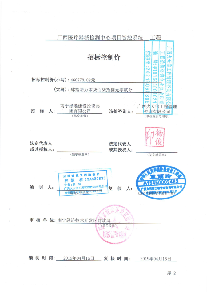 附件:廣西醫(yī)療器械檢測(cè)中心項(xiàng)目智控系統(tǒng)工程招標(biāo)控制價(jià)