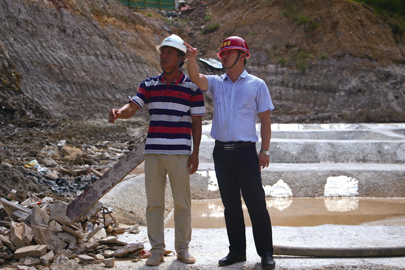 何小勇(右一)對(duì)現(xiàn)場(chǎng)施工進(jìn)行指導(dǎo)