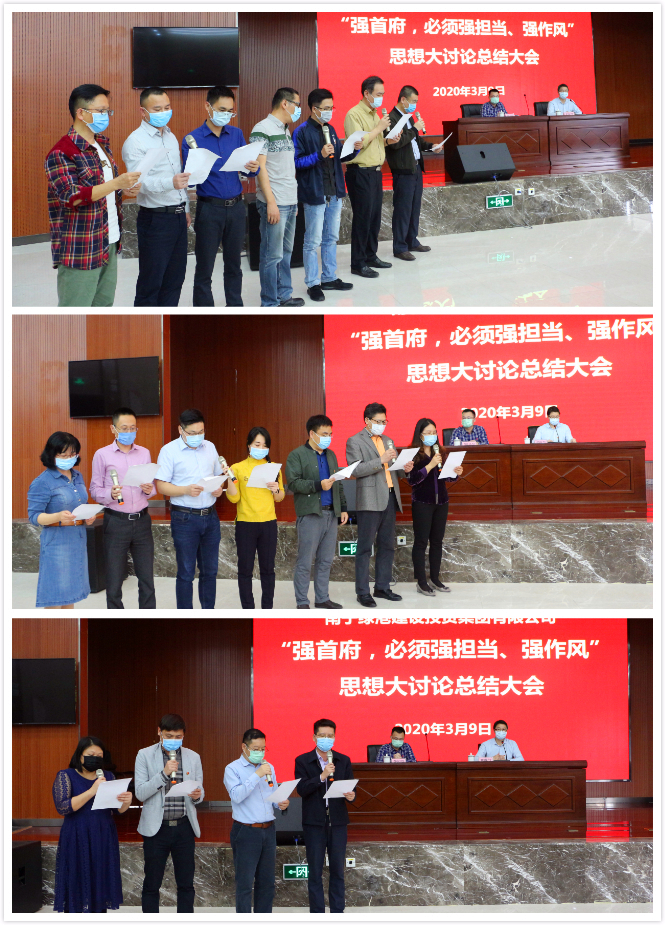 最后,集團黨委書記、董事長龔國強對本次思想大討論活動開展情況進行了總結(jié)點評,并要求各部門、各子公司認真踐行諾言,落實落細措施,確保取得良好成效。龔書記表示,當前疫情形勢依然嚴峻復(fù)雜,全國各地都在做好疫情防控的前提下,出臺了一系列政策措施,搶開局、穩(wěn)經(jīng)濟、促發(fā)展。綠港集團在疫情防控的關(guān)鍵時刻召開這次總結(jié)會,就是要進一步營造一心一意謀發(fā)展的濃厚氛圍,形成全力以赴落實強首府戰(zhàn)略的強烈共識,傳遞出疫情防控和經(jīng)濟發(fā)展兩手抓、兩手都要硬的鮮明導向和強烈信號,為實現(xiàn)集團公司高質(zhì)量發(fā)展的“加速度”,全力以赴完成好新的一年集團公司的各項發(fā)展任務(wù)目標。作為經(jīng)開區(qū)最大的平臺公司,2020年年初以來,綠港集團緊緊圍繞“強首府,必須強擔當、強作風”的總體要求,著重在“學精神、查不足、求改變、強擔當”上下功夫,針對如何解決六個方面突出問題、如何克服十種突出現(xiàn)象以及如何在八種情形下運用容錯糾錯機制,結(jié)合工作實際,群策群力開展了三次專題思想大討論活動,通過查深、查透、立行立改,有力轉(zhuǎn)變了作風,進一步提高了干部職工的緊迫感、使命感,為全面落實強首府戰(zhàn)略,奮力譜寫集團公司高質(zhì)量發(fā)展新篇章凝聚了共識,集聚了動力。