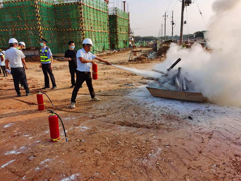 此次活動(dòng)主要是模擬火災(zāi)發(fā)生后的應(yīng)急處置。活動(dòng)當(dāng)天,發(fā)現(xiàn)險(xiǎn)情后,安全員立即上報(bào),并進(jìn)行控制和處理,并播報(bào)消防疏散通知。在總指揮的安排下,安全防護(hù)組、滅火行動(dòng)組、疏散救援組、通訊聯(lián)絡(luò)組同時(shí)行動(dòng)。安全防護(hù)組立刻關(guān)閉總電源閘門;滅火行動(dòng)組拿取就近的消防器材進(jìn)行滅火;疏散救援組迅速引領(lǐng)工人從安全通道撤離到安全地點(diǎn);通信聯(lián)絡(luò)組將現(xiàn)場情況及時(shí)反饋給總指揮和現(xiàn)場指揮。待火勢完全撲滅,所有人員到達(dá)預(yù)定安全地點(diǎn),通訊聯(lián)絡(luò)組認(rèn)真清點(diǎn)人數(shù),確認(rèn)無任何人員傷亡及財(cái)產(chǎn)損失。演練結(jié)束后,項(xiàng)目部組織滅火器的實(shí)操練習(xí)。施工人員按照講解的動(dòng)作要領(lǐng)使用了滅火器,對布置的“起火點(diǎn)”進(jìn)行有效撲救。