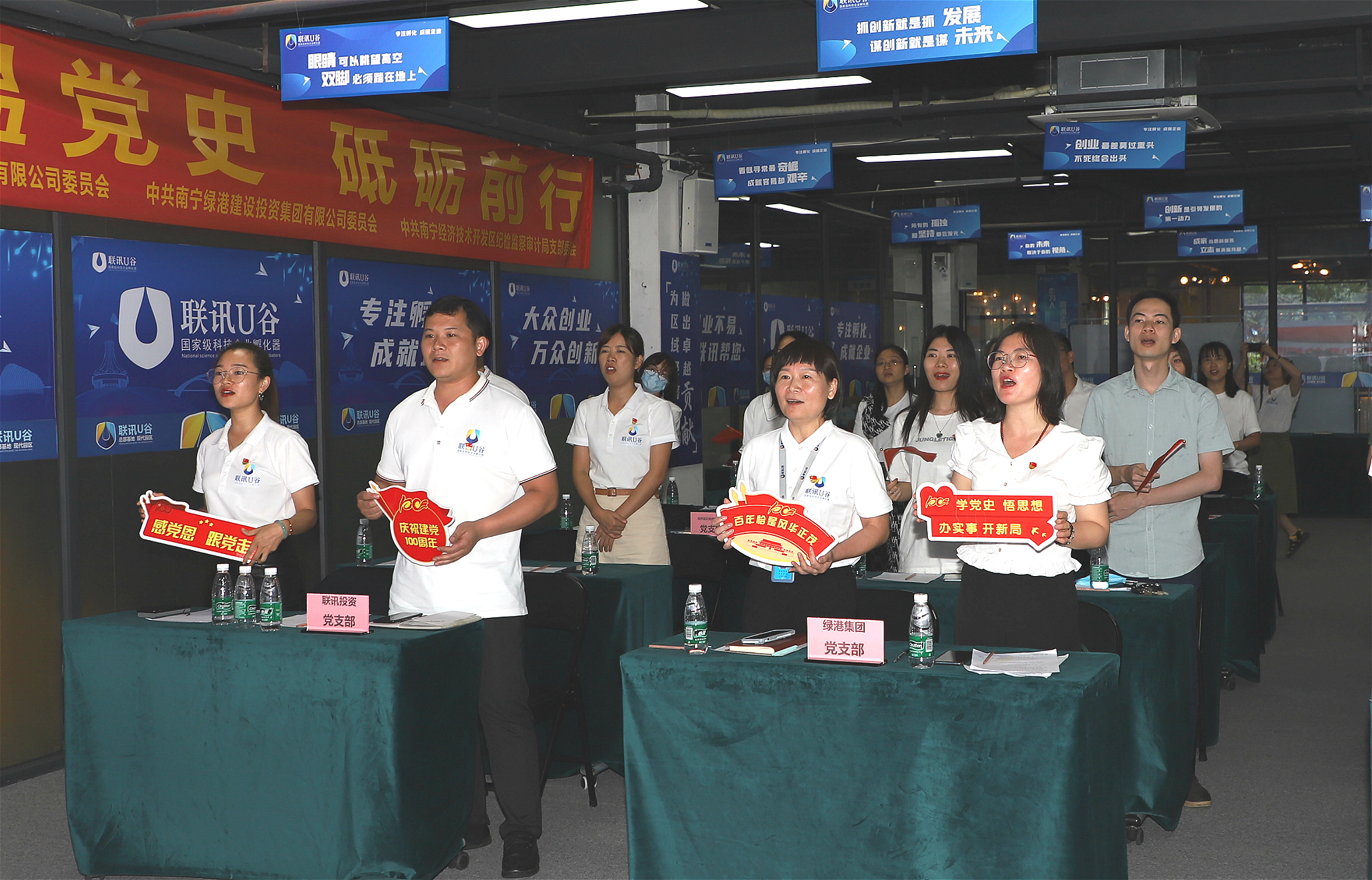 為慶祝建黨100周年,繼承和發(fā)揚(yáng)黨的優(yōu)良傳統(tǒng)和作風(fēng),扎實(shí)推進(jìn)黨史學(xué)習(xí)教育,推動(dòng)學(xué)習(xí)教育走深走實(shí),5月26日,綠港集團(tuán)黨委、廣西聯(lián)訊黨委、南寧經(jīng)開(kāi)區(qū)紀(jì)檢監(jiān)察審計(jì)局黨支部聯(lián)合舉辦“重溫黨史 砥礪前行”主題黨建共建活動(dòng),綠港集團(tuán)、廣西聯(lián)訊、南寧經(jīng)開(kāi)區(qū)紀(jì)檢監(jiān)察審計(jì)局的黨員代表、發(fā)展對(duì)象、入黨積極分子共35人參加了活動(dòng)。