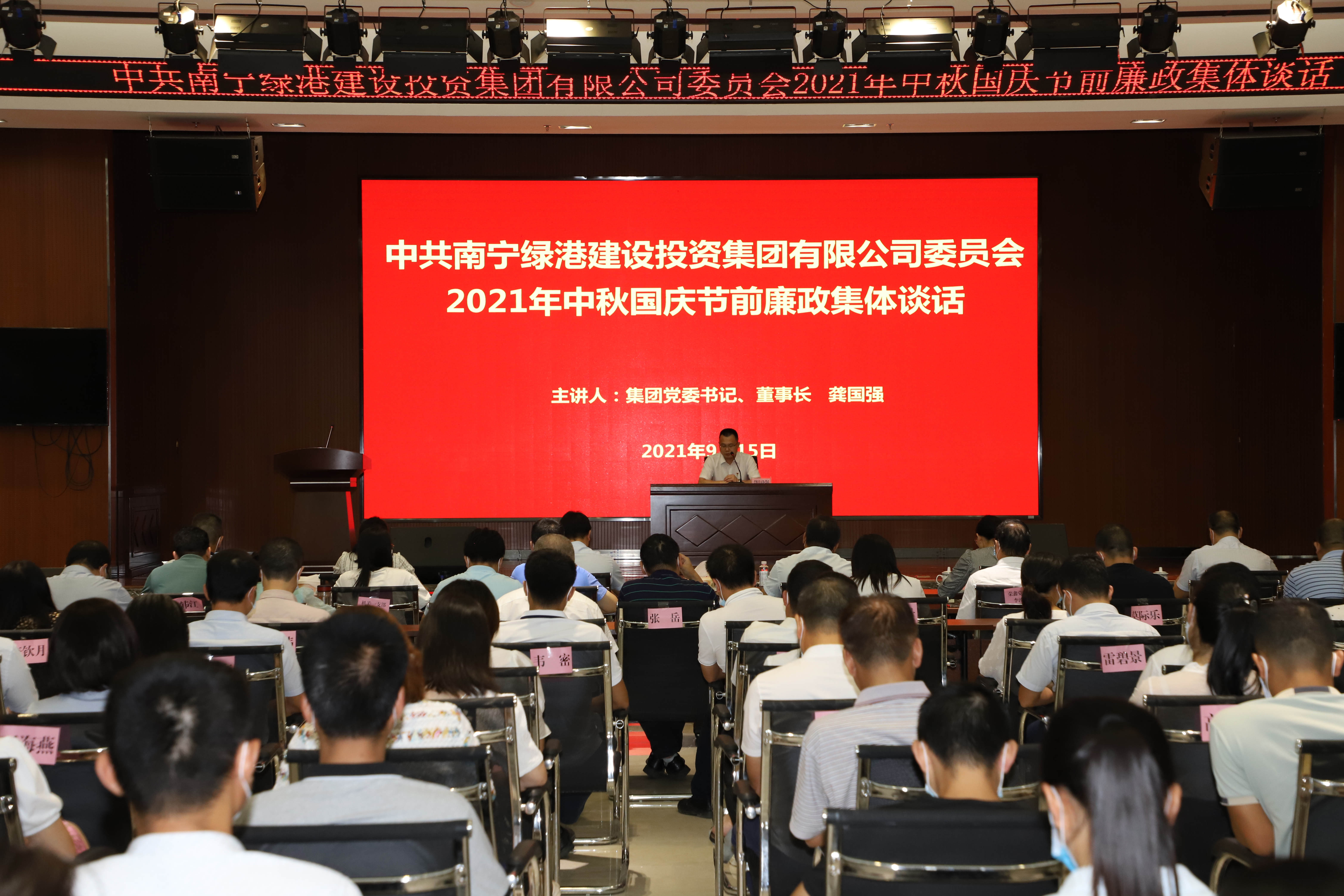 節(jié)前送“提醒”“廉節(jié)”更有味——綠港集團開展2021年中秋國慶節(jié)前廉政集體談話
