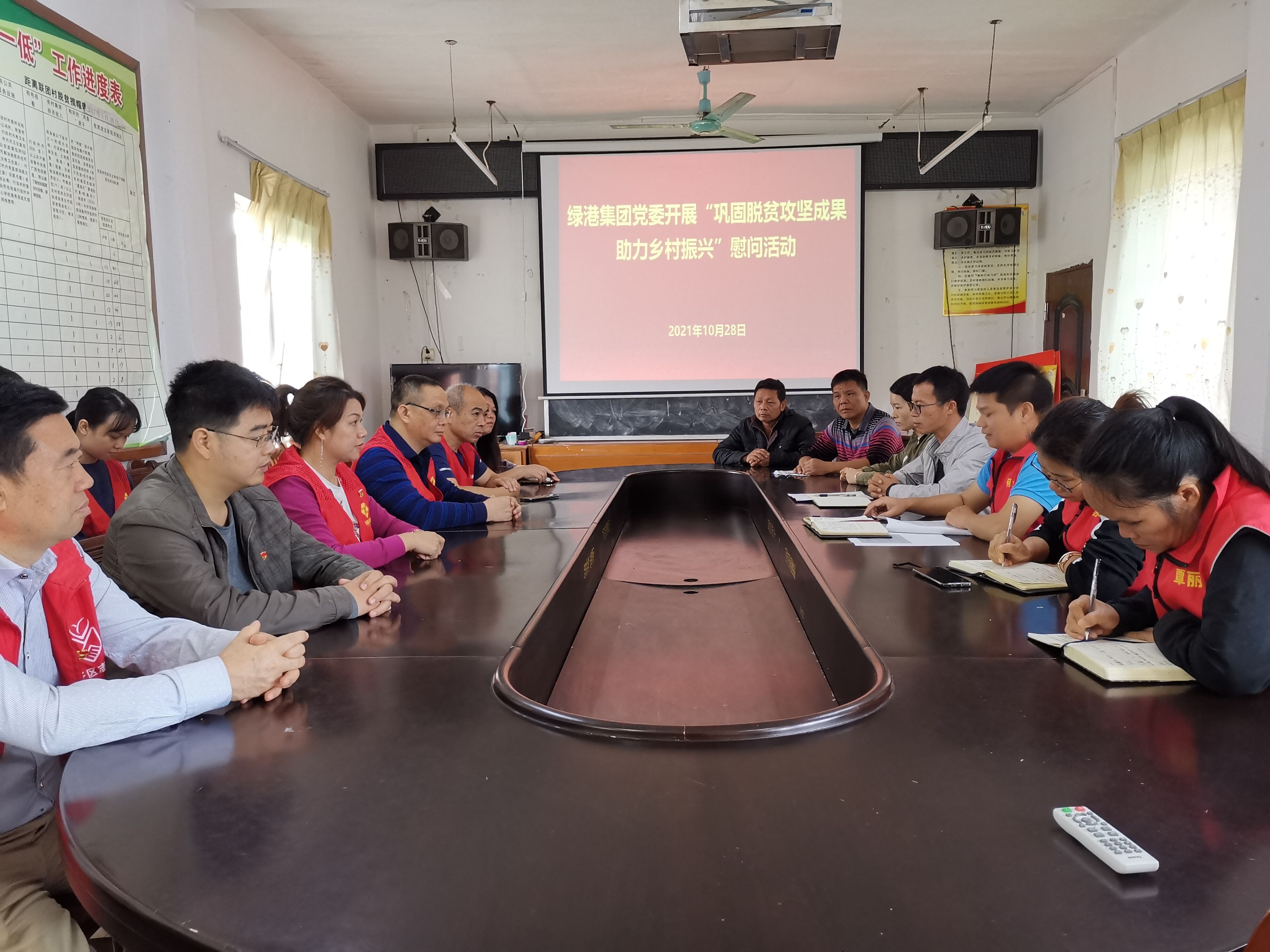 10月28日,綠港集團(tuán)黨委委員、紀(jì)委書(shū)記蘭赤壽帶領(lǐng)綠港集團(tuán)各黨支部、團(tuán)總支代表一行來(lái)到對(duì)口幫扶的邕寧區(qū)蒲廟鎮(zhèn)聯(lián)團(tuán)村開(kāi)展“鞏固脫貧攻堅(jiān)成果 助力鄉(xiāng)村振興”慰問(wèn)活動(dòng)。經(jīng)開(kāi)區(qū)綜治辦、生態(tài)環(huán)境局、蒲廟鎮(zhèn)聯(lián)團(tuán)村駐村第一書(shū)記何承遜以及聯(lián)團(tuán)村村干部參加了慰問(wèn)活動(dòng)。