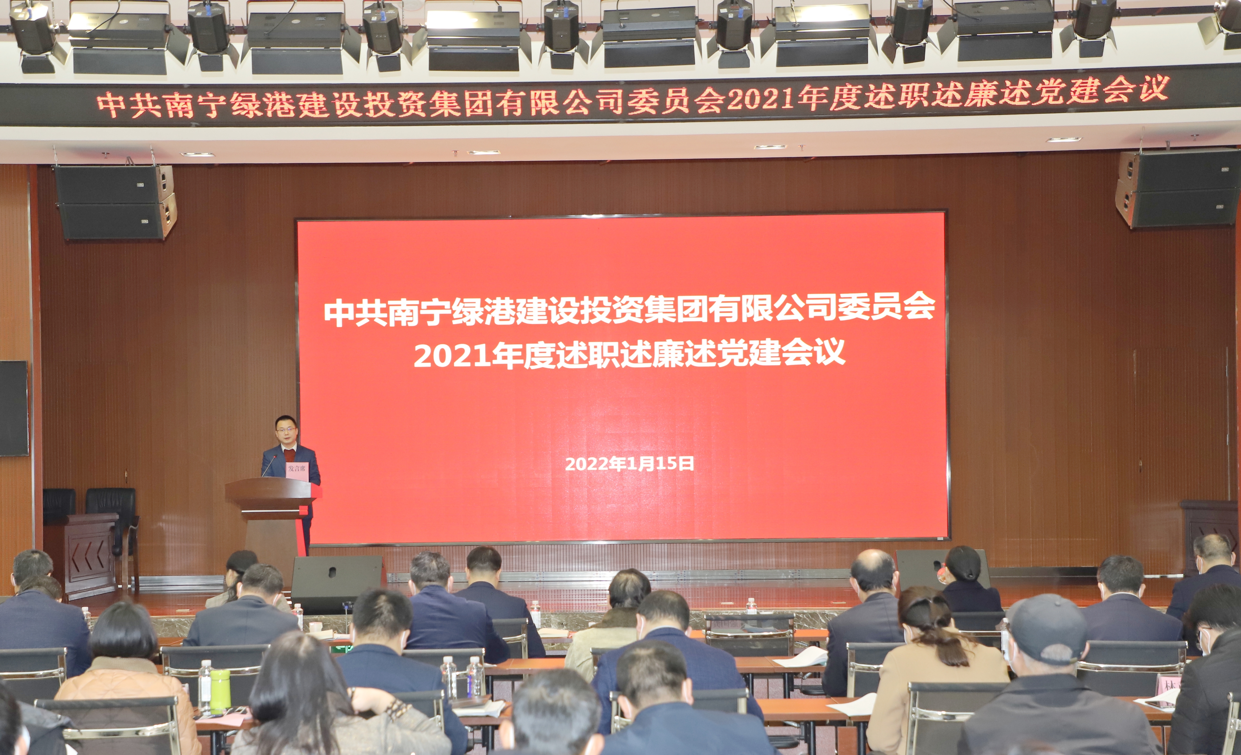 2022年1月15日,綠港集團召開2021年度述職述廉述黨建會議,集團黨委書記、董事長龔國強代表集團公司作述職述廉述黨建工作報告,集團黨委副書記、總經理鄧繼慧主持會議,集團公司領導班子全體成員、集團總部全體人員、各子公司中層副職以上領導參加會議。