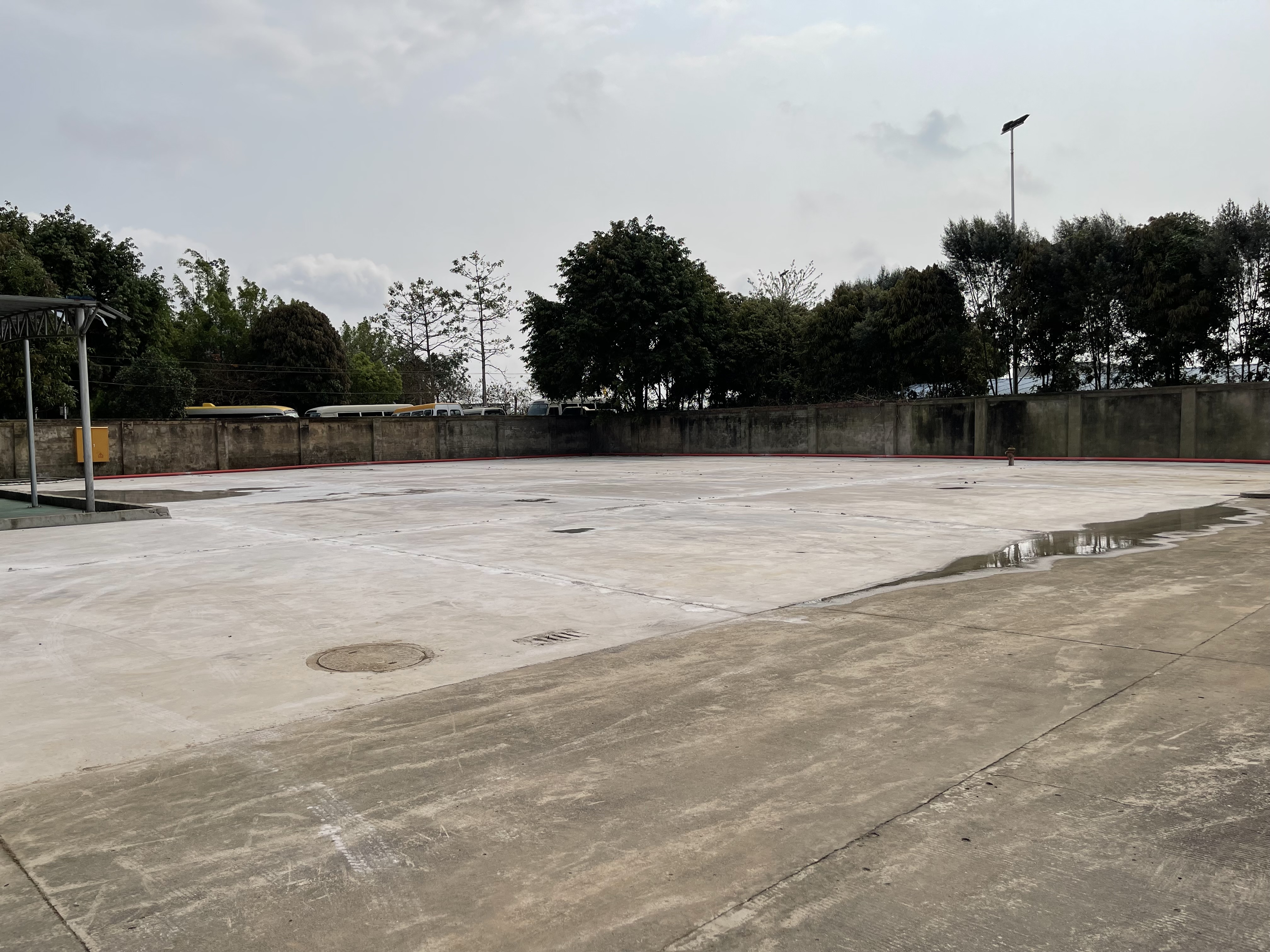 19日凌晨1時17分,最后一車混凝土澆筑完成,車輛和檢疫消殺設備放置處完成施工,聯(lián)檢樓及大院改造工程基礎工程基本完成!