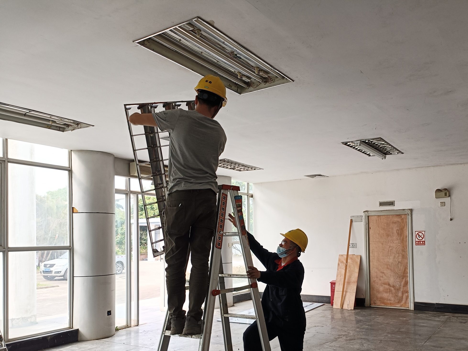 為盡快通水通電,室內的工人一個插座一個插座地接線測量,一個電燈一個電燈地安裝測試,一個水管一個水管地通水調試。室外的工人則打開大院的配電房,從配電房里接出90米長的50m㎡銅芯電纜,以滿足檢疫消殺的電力需求。