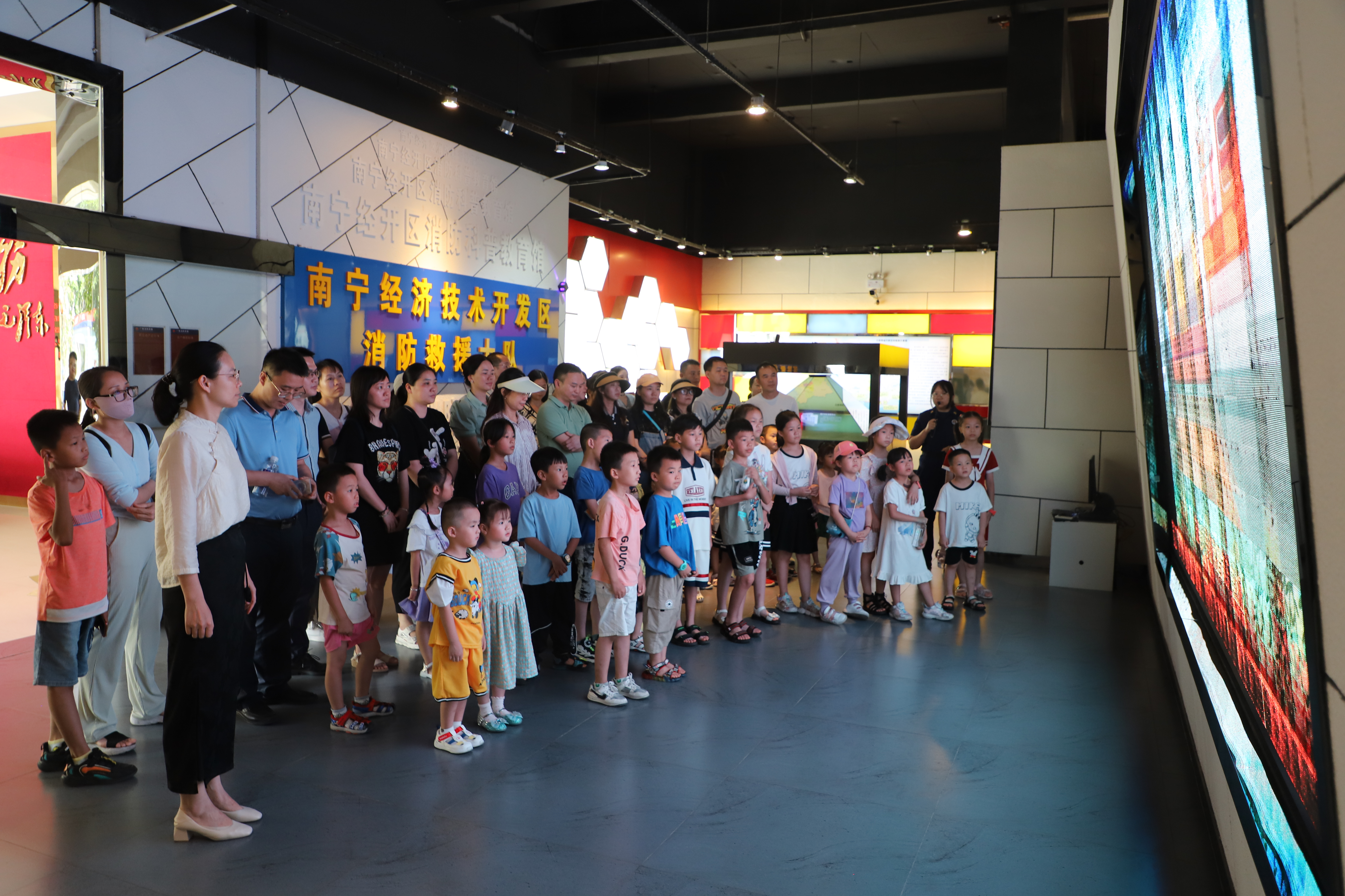 在“六一”兒童節(jié)當(dāng)天,經(jīng)開(kāi)區(qū)消防大隊(duì)往日的寧?kù)o被小朋友們歡聲笑語(yǔ)打破,原來(lái),這里正在舉辦“快樂(lè)六一 消防“童行”活動(dòng),這是綠港集團(tuán)黨委與經(jīng)開(kāi)區(qū)消防大隊(duì)切實(shí)落實(shí)習(xí)近平總書記關(guān)于少年兒童工作的重要論述,進(jìn)一步關(guān)愛(ài)少年兒童健康成長(zhǎng)的重要舉措。消防安全一環(huán)扣一環(huán),思想上防患于未“燃”。在消防科普展館,講解員引領(lǐng)小朋友們體驗(yàn)了數(shù)字沙盤、精確投影等技術(shù)帶來(lái)的災(zāi)害救援、消防知識(shí)、安全應(yīng)急的互動(dòng)感受,在消防員的帶領(lǐng)下接觸了云梯、滅火器等實(shí)物消防設(shè)施,提高了孩子們的消防安全意識(shí),強(qiáng)化了大家的自保自救能力。