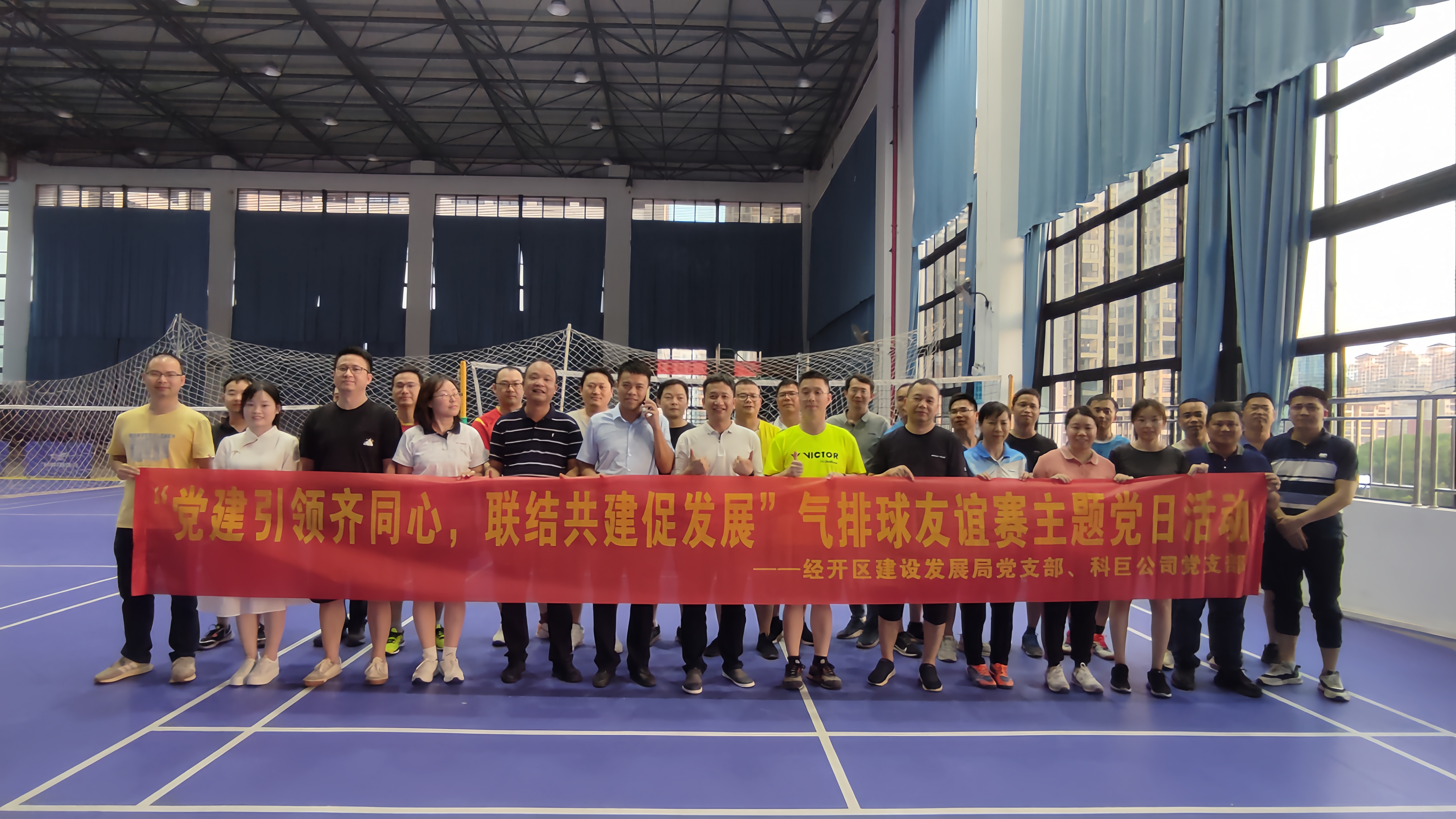 “今晚的友誼賽打得真是酣暢淋漓!”隊(duì)員們賽后仍然意猶未盡。5月30日,為進(jìn)一步增強(qiáng)黨支部之間的交流,科巨公司黨支部與經(jīng)開區(qū)建設(shè)發(fā)展局黨支部在綠港·歡樂里魚悅體育館開展了一場熱情洋溢、精彩紛呈的“黨建引領(lǐng)齊同心,聯(lián)結(jié)共建促發(fā)展”氣排球友誼賽主題黨日活動(dòng),以黨建為契機(jī),揮灑運(yùn)動(dòng)汗水,點(diǎn)燃夏日激情,強(qiáng)化政企溝通,增進(jìn)政企共識(shí),攜手共建經(jīng)開新篇章!