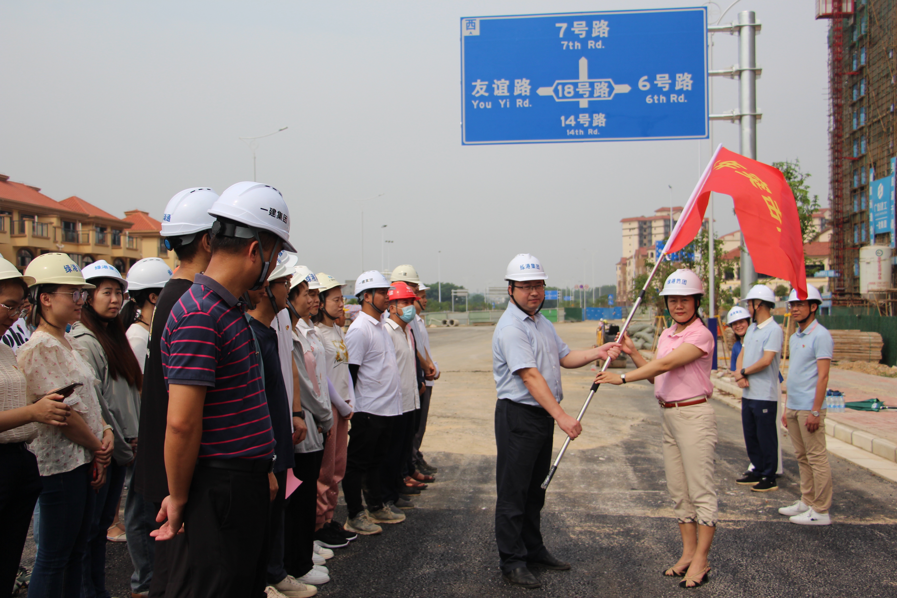 項(xiàng)目黨旗紅,一線先鋒行。為更好地服務(wù)項(xiàng)目建設(shè),全方位打贏“民生精品工程交付”攻堅(jiān)戰(zhàn),進(jìn)一步強(qiáng)化基層黨組織和廣大黨員在生產(chǎn)經(jīng)營各項(xiàng)工作中的戰(zhàn)斗堡壘和先鋒模范作用,充分展示黨員和青年在公司重點(diǎn)工程項(xiàng)目建設(shè)中的風(fēng)采,6月13日,嘉通公司黨支部在綠港·尚尊一品(二期)項(xiàng)目現(xiàn)場舉行2023年“黨員先鋒隊(duì)”“青年突擊隊(duì)”授旗儀式。綠港集團(tuán)黨委委員、副總經(jīng)理黃麗琴出席活動并作講話。集團(tuán)成本管理部、營銷管理中心、嘉通公司黨支部全體黨員以及項(xiàng)目施工單位、監(jiān)理單位參加活動。